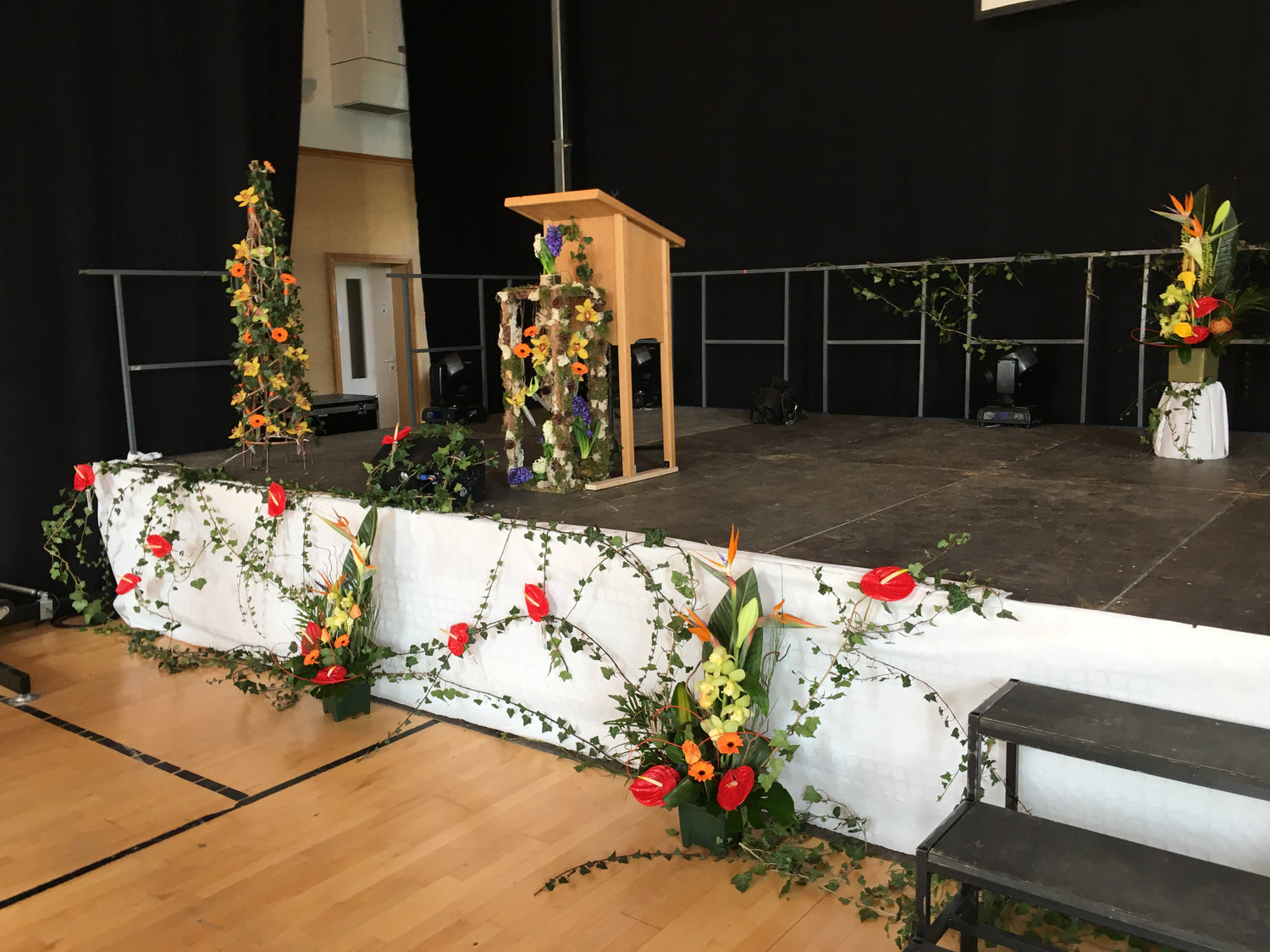 J’accompagne les entreprises, collectivités, associations et différentes structures dans la création de décors floraux adaptés à leurs événements et à leurs lieux.